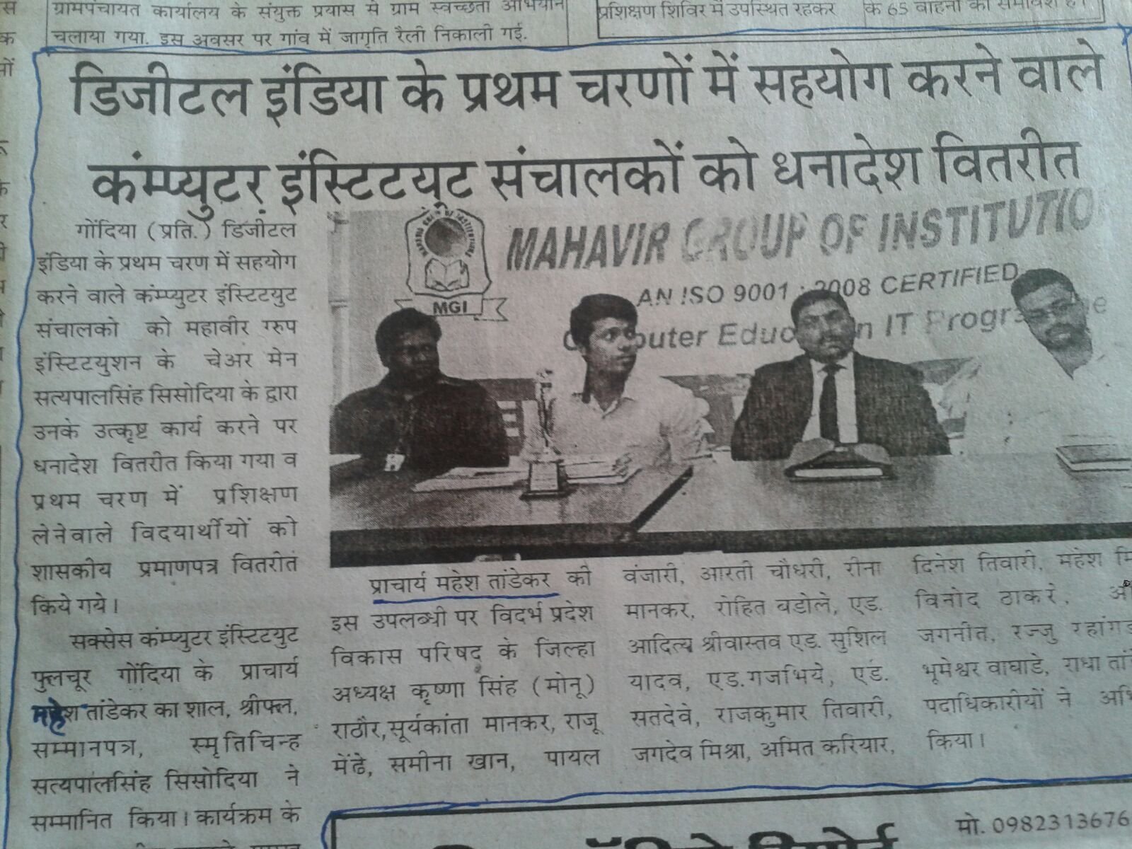 News Paper: Mahavir Group of Institutions (MGI)